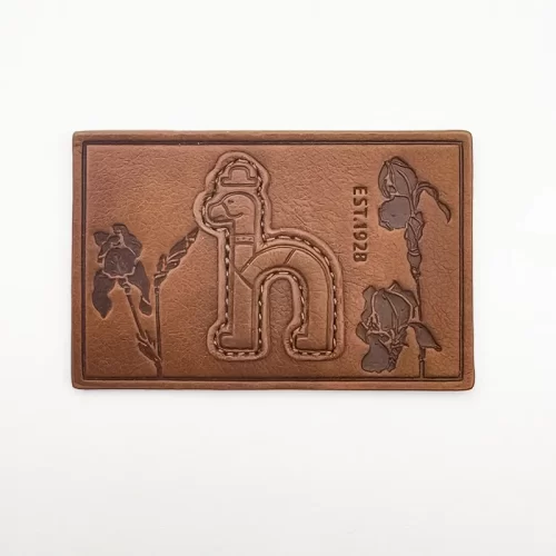 背包反光皮革压花标牌 – 浅褐色品牌标签