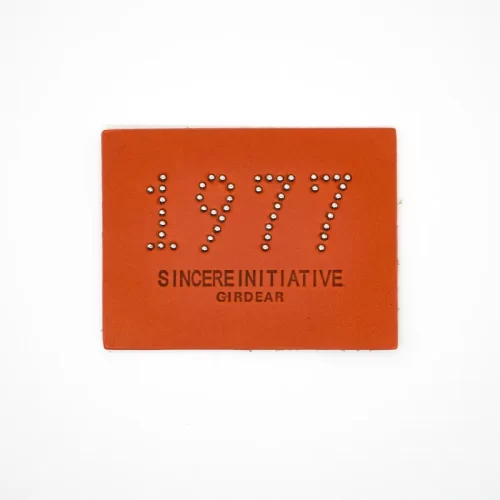 橙色皮革自粘皮标-配银色铆钉