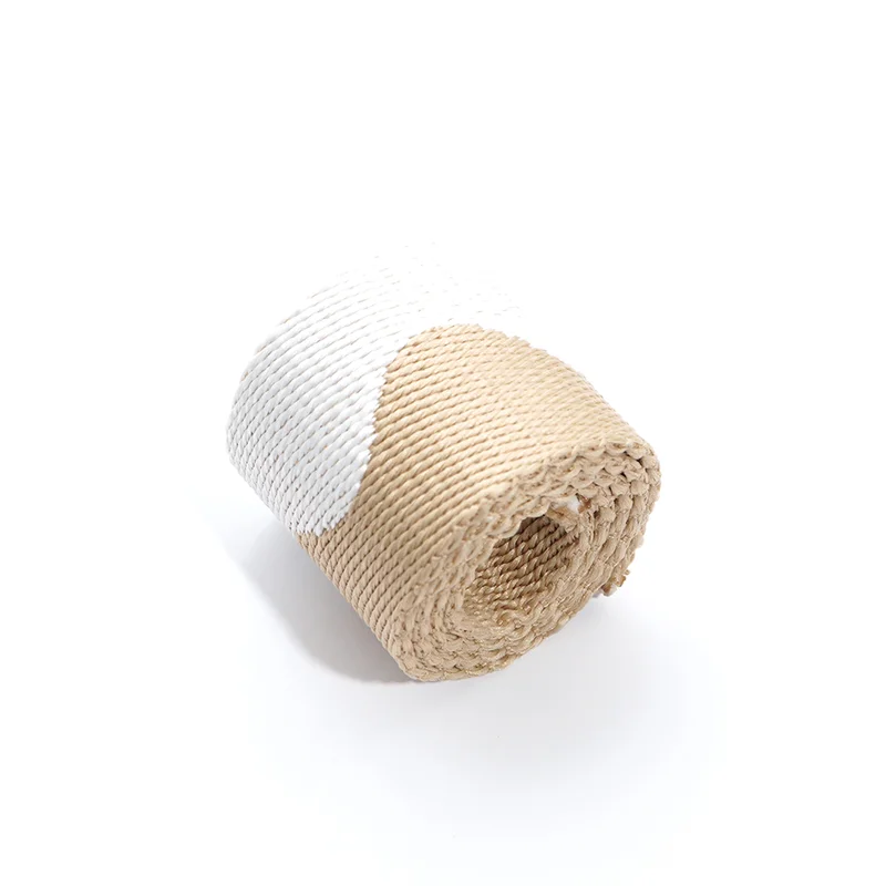 - 卷状展示,直观呈现织带的高密度缠绕形态,以及编织纹理的立体质感,同时体现织带的柔韧性与可弯折性。