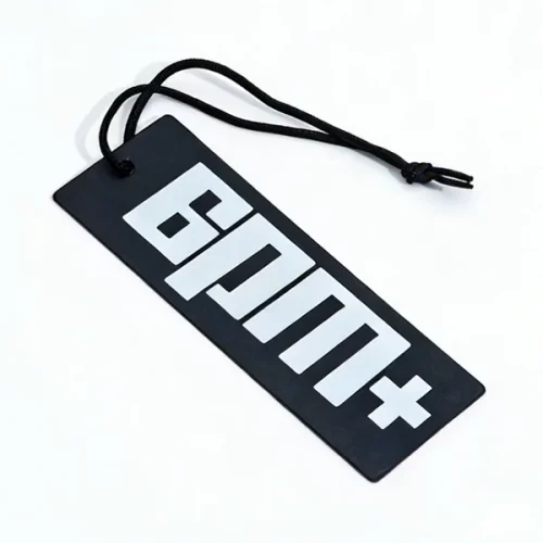 哑光黑色纸质服装吊牌-双层内嵌蓝底金字标志