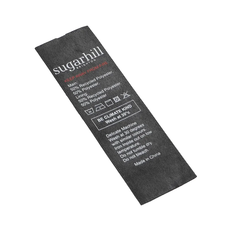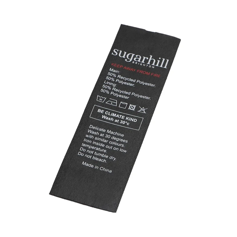 通过结合环保材质说明、清晰洗护信息以及耐用的织唛结构,这种标签不仅提升产品专业度,也有助于传递品牌的环保理念。