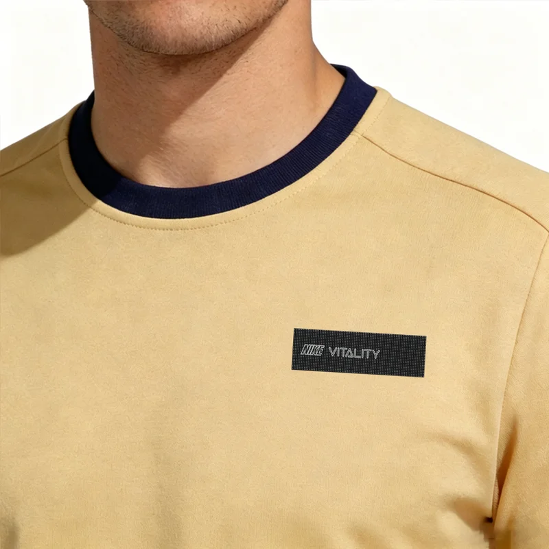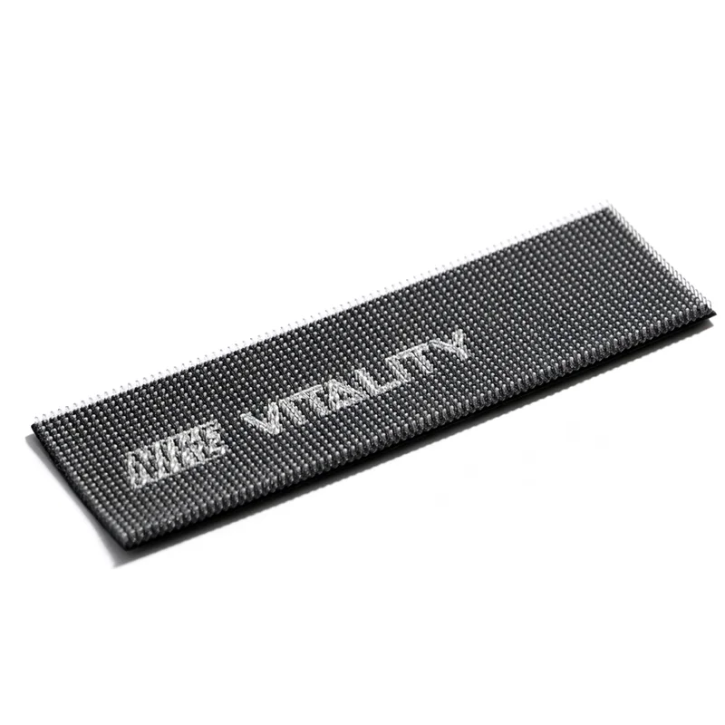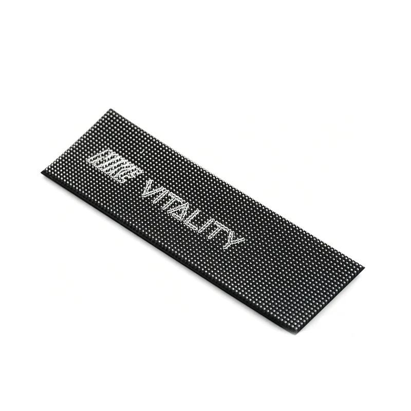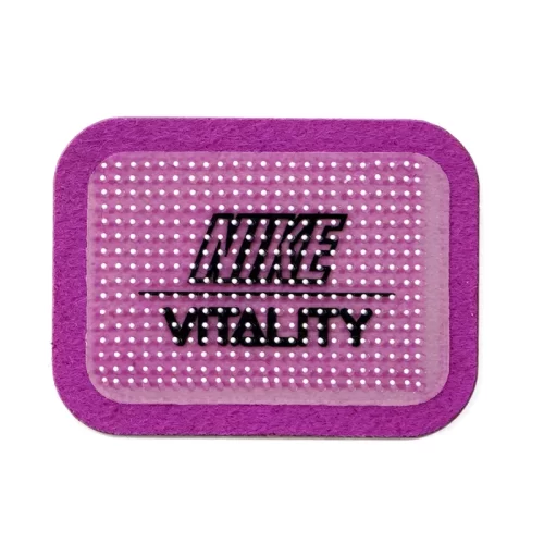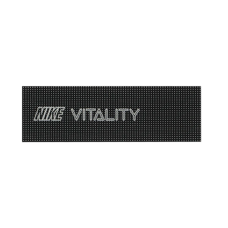 品牌标识:“NIKE VITALITY” 字样采用银色硅胶勾勒,字体清晰,与黑色底布、透明凸点形成对比,品牌辨识度高。