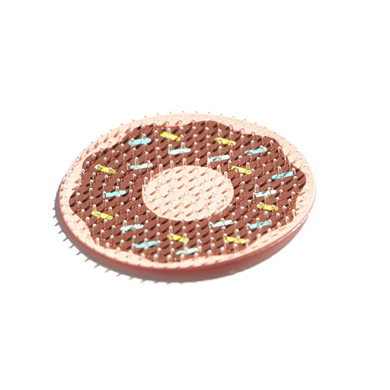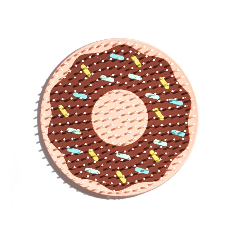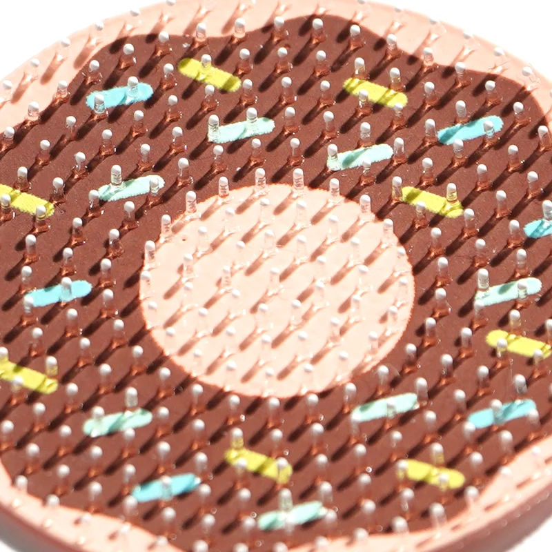 甜甜圈主题:完美还原巧克力甜甜圈的形态,深棕色基底搭配浅粉色中心,再用多色硅胶凸点模拟糖屑,趣味十足,适配童装、潮牌、休闲服饰。