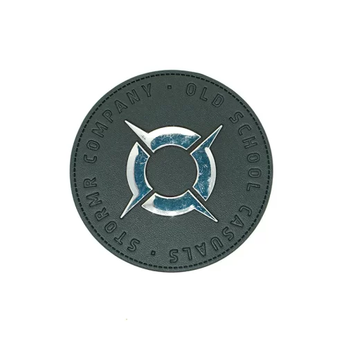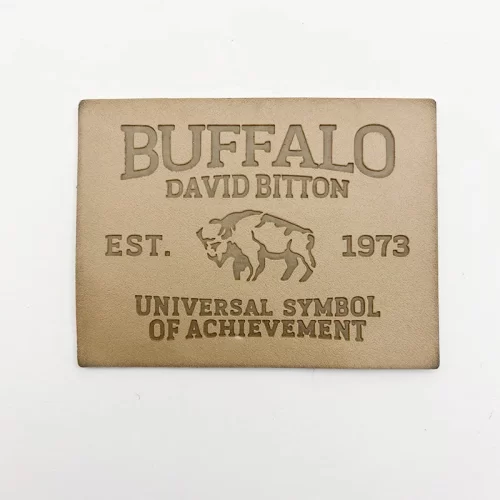 服装用快速缝制皮革标 —— 电压文字压纹蓝色皮革标