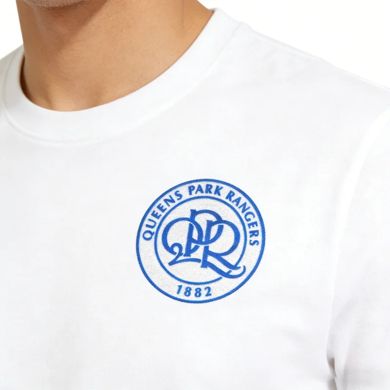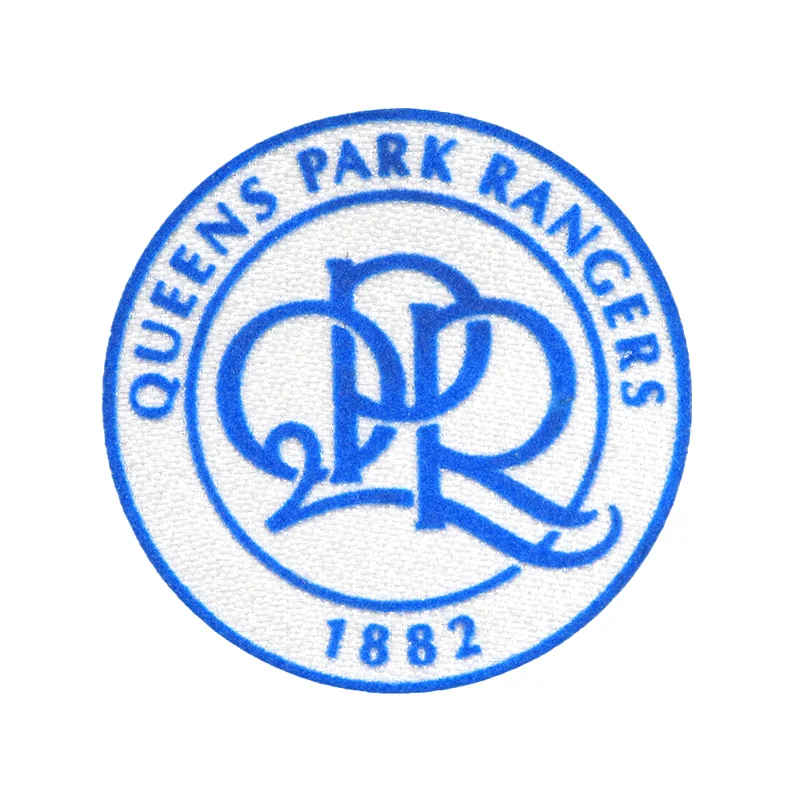 中心为“QPR”字母组合,蓝色植绒立体感强,凸显视觉效果。外围为蓝色植绒文字环,刺绣均匀,确保清晰可读。底部“1882”标注俱乐部成立年份,彰显悠久历史与文化传承。